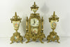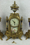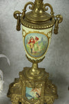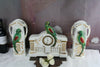 Gorgeous mantel clock set garniture Louis XVI decoration on clock matching side urns all decorated with victorian romantic...