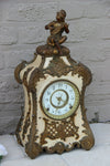 Gorgeous antique clock Metal with bronze ornaments on top a music playing lady ( chip end of instrument...