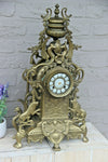 Antique French bronze mantel clockgothic castle theme with lions and dragon and lion paws very decorative impressive piece...