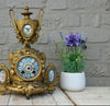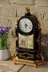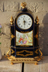 Antique French Mantel clockSpelter bronze with sevres porcelain medaillons putti / bird and floral dial plate in porcelainvery...