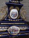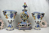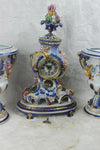 A gorgeous clock set with matching side urnswith encrusted majolica floral decor side urns are 26 cm height...