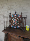 vintage french rare to find tryptich wall clockwood frame and metal with enamel decor decoration very special clockworks...