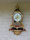 vintage italian BOULLE clock with matching console1970with key and pendulum, clock ticks and chimes, has just not had...