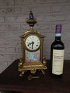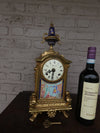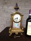 vintage 70s bronze & porcelain mantel clockwith putti cherub figurinesporcelain plaquette and top very beautiful FHS movement ticks...