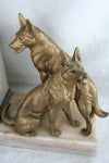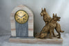 An ART DECO french clocksolid marble with spelter gold gilt sheep dog couplevery heavy piece , i think...