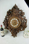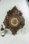 Huge wood carved Black forest Wall clockvery detailed with hunting theme( rabbit ,bird ,deer, horn ,floral elements ,...