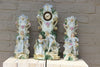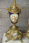 Gorgeous mantel clock set garniture Louis XVI decoration on clock matching side urns all decorated with victorian romantic...