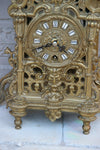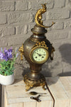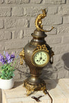 Antique french metal brass clockwith a dragon figurine on top and lion heads on the sidesclockwork is marked...