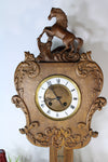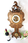 vintage 1960s wood carved wall clock regulator with horse figurine on topvery nice wood carvingworks , has just...