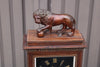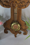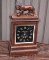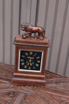 Antique 1900s wood mantel clock with bronze lion on topworks and chimes 22,5 x 12,5 x 40 cm...