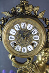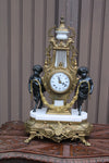 Gorgeous vintage marble and bronze mantel clockwith putti faun figurineFHS movement clock ticks and chimes ,has just not...