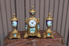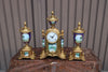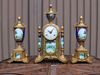 vintage 1970s porcelain and brass mantel clock setwith landscape decorvery beautiful clock system stops ticking after a few...