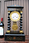 Antique napoleon III clock 19thcwith columns and enamel inlayticks and chimes, has just not had service for some...