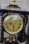 Vintage T limoges cobalt blue porcelain mantel / table clockmarked works with battery 37 cm height and 23,5...
