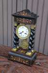 Antique napoleon III clock 19thcwoodwith columns and inlay wood decorticks and chimes, has just not had service for...