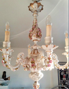 Gorgeous Italian porcelain chandelierCapodimonte with majolica encrusted floral decormarked6 armsgood condition with usual wear ( could use some...