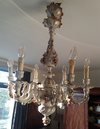 A top piece from a former castle owner in franceoak wood carved gothic chandelier with 6 arms with...