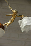 A top piece from France1960/1970With 3 arms held by putti figurines in bronze and signed MATHIEU glass tulip...