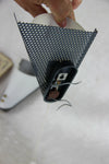 PAIR vintage french wall lightsattr. to Mathieu mategot perforated black metal back plate and white perspex shade 21...