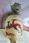 A true beauty from BelgiumChandelier / pendant in glass with enamel antilop deer decorationhand made by V de...