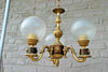 Vintage 1970 chandelierwith 3 armsbrass with lion headsglass globes65 cm height till canopy and 40 cm diameter( for...