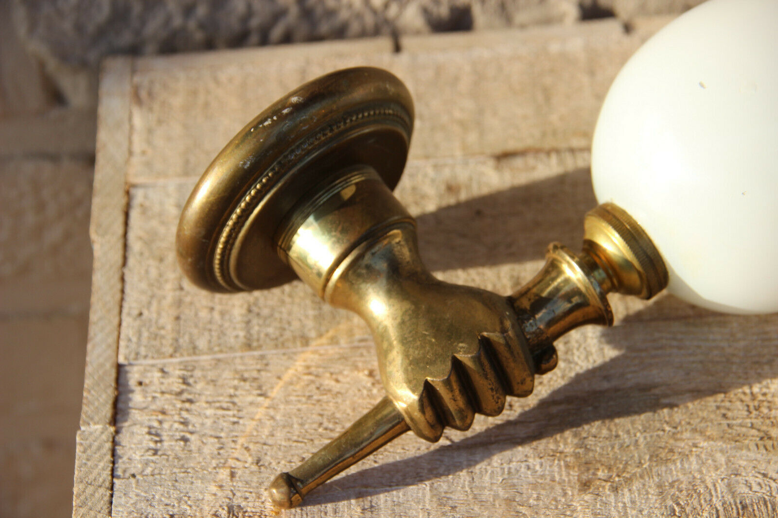 PAIR mid century Maison jansen bronze hand sconces wall lights opaline shades