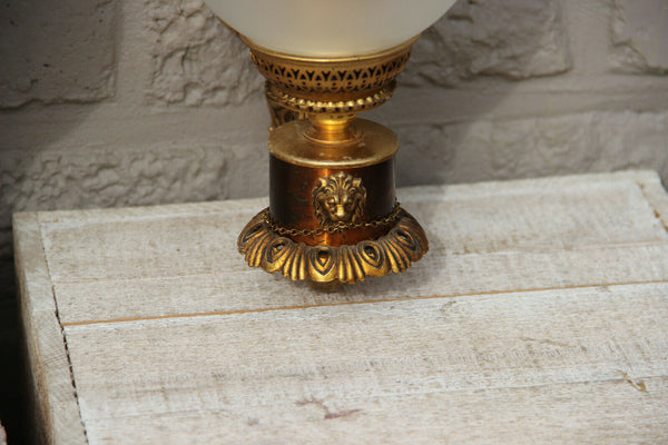 PAIR vintage 1960 French brass metal Lion head wall lights sconces glass globe
