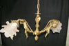 A gorgeous French antique chandelier pendant brass with 2 putti cherubs arms pink tulip glass shades perfect for...