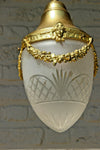 Antique french entrance hall lantern / chandelierwith a val saint lambert crystal glass acorn shade brass frame with...