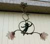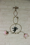 Top piece from Franceantique chandelier pendant spelter bronze putti 2 arms with pink tulip glass paste shades (...