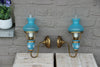 Top pieces from France 1970s Opaline blue turqouise glass wall lights with glass shade and flute Romantic scenes...