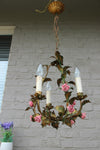 Gorgeous French chandelier from 1960/1970Metal dore and majolica roses flowers good condition, very minimal flakes at majolica flowers...