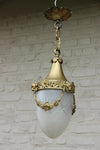 antique religious altar lampbrass / metal with opaline white lily flowerstypical religious design from around 19003 bulbs e14...