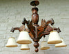 Gorgeous French antique gothic castle chandelierWood carved with dragon arms 1920s good condition with minimal wear, a tiny...