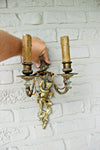 PAIR bronze antique wall lights with putti figurine 2 arms eachis from 1920s 35 cm height and 18...