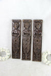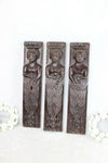 Gorgeous French antique Wood cabinet panels3 pieceseach depicting a male figurine holding a key / knife / cup2...