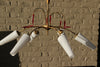Vintage retro Rockabilly chandelierbrass with white opaline glass shade tubes ( 6x )Red translucide pins model attributed to...