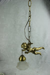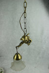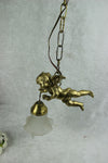 French vintage bronze putti pendant chandelier70 cm lenght and putti is 20 cm in lenghtglass tulip shade1950/1960 I...