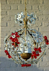 Top Vintage French Chandelier /pendant light with clear and red glass flower daisy flowersModel attr. to MAISON BAGUES...