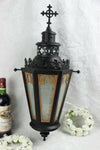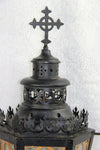 RELIGIOUS Vintage church lantern with a candle holder inside is from 1950's metal black lacquered ( some finish...