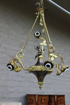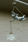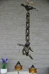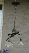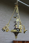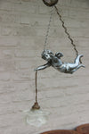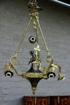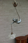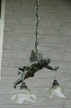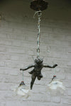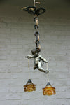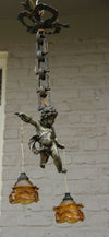Superb antique french pendant lamp chandelier with a spelter bronze putti angel figurine ( measures 18 cm )...
