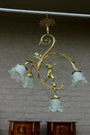 Vintage 1970 French metal brass chandelier with 5 arms palm tree design is attributed to maison jansen 65...