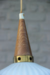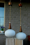 PAIR retro vintage pendant lights teak and white glass shades typical pieces from 1970scandinavian design 75 cm height...
