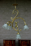 Top piece from FranceBronze putti angel pendant lamp / chandelier2 arms decorated with branches of a rose bush...