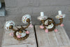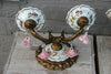 Vintage PAIR French wall lightsmetal and porcelain faience decoration with hanging pink roses very gorgeous 24 cm wide...