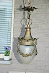 Gorgeous french antique bronze / metal / crystal glass lantern with lion heads and a crystal glass acorn...
