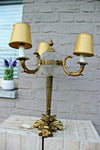Gorgeous french antique empire bronze lampwith swan arms fabric shades on top ( bulbs e 14 not included)lamp...