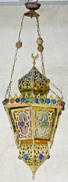 Oriental Turkish Brass /coloured glass lantern inside is 1 lamp socket holder so 1 lamp can be placed...