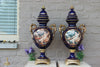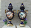 Vintage pair cobalt blue porcelain Vaseswith romantic decorslidded55 cm height eachmarked at base overall good vintage condition with...