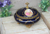 gorgeous cobalt blue porcelain limoges boxwith fragonard romantic sceneliddedmarked bottom17 cm diameter widest and 13 cm height 1960s...